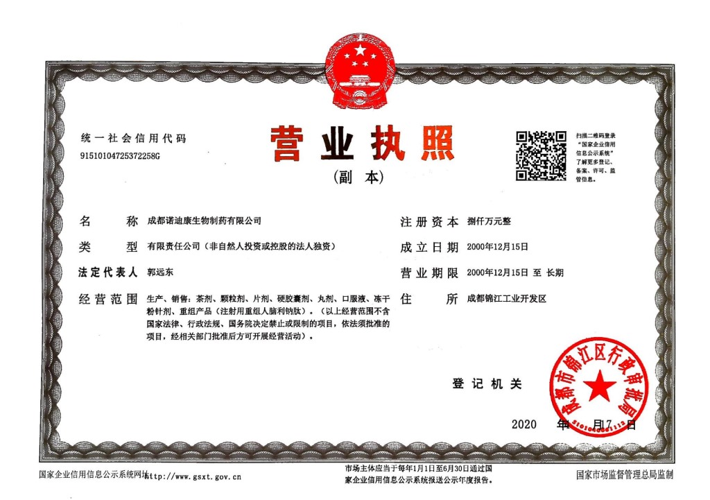 成都諾迪康生物制藥有限公司始建于2000年12月,注冊資本8000萬元,系西藏諾迪康藥業(yè)股份有限公司(股票簡稱: 西藏藥業(yè),股票代碼:600211)全資子公司,位于成都市錦江工業(yè)園內(nèi),是最早批進入錦江工業(yè)園區(qū)的企業(yè)之一,屬于四川省及成都市現(xiàn)階段重點培育和發(fā)展的七大戰(zhàn)略性新興產(chǎn)業(yè)之一。公司是西藏藥業(yè)旗下生物藥品(重組蛋白)的研發(fā)生產(chǎn)基地,國家一類基因工程藥物“注射用重組人腦利鈉肽”的產(chǎn)業(yè)化生產(chǎn)基地,擁有原核表達系統(tǒng)(大腸桿菌)基因工程規(guī)?;a(chǎn)平臺(基因車間、凍干車間)。